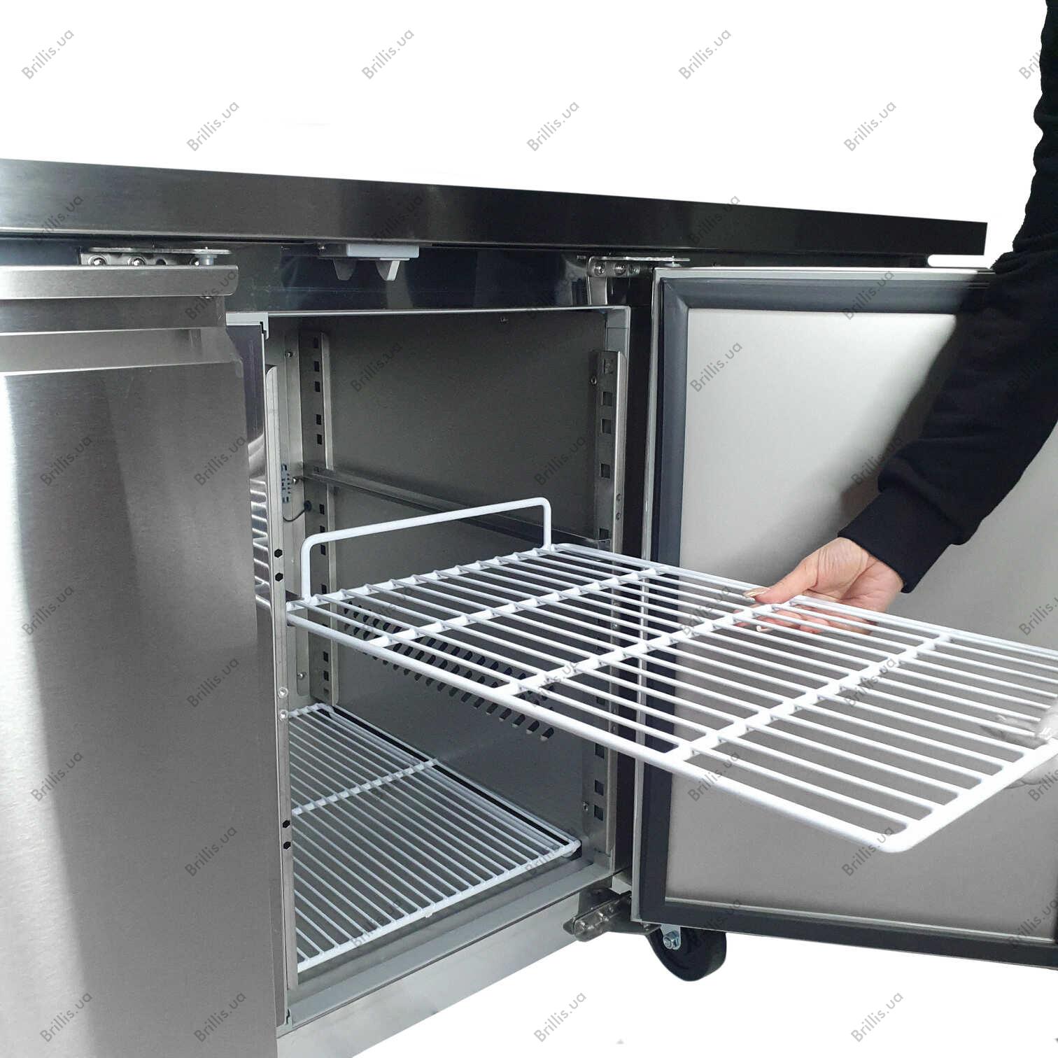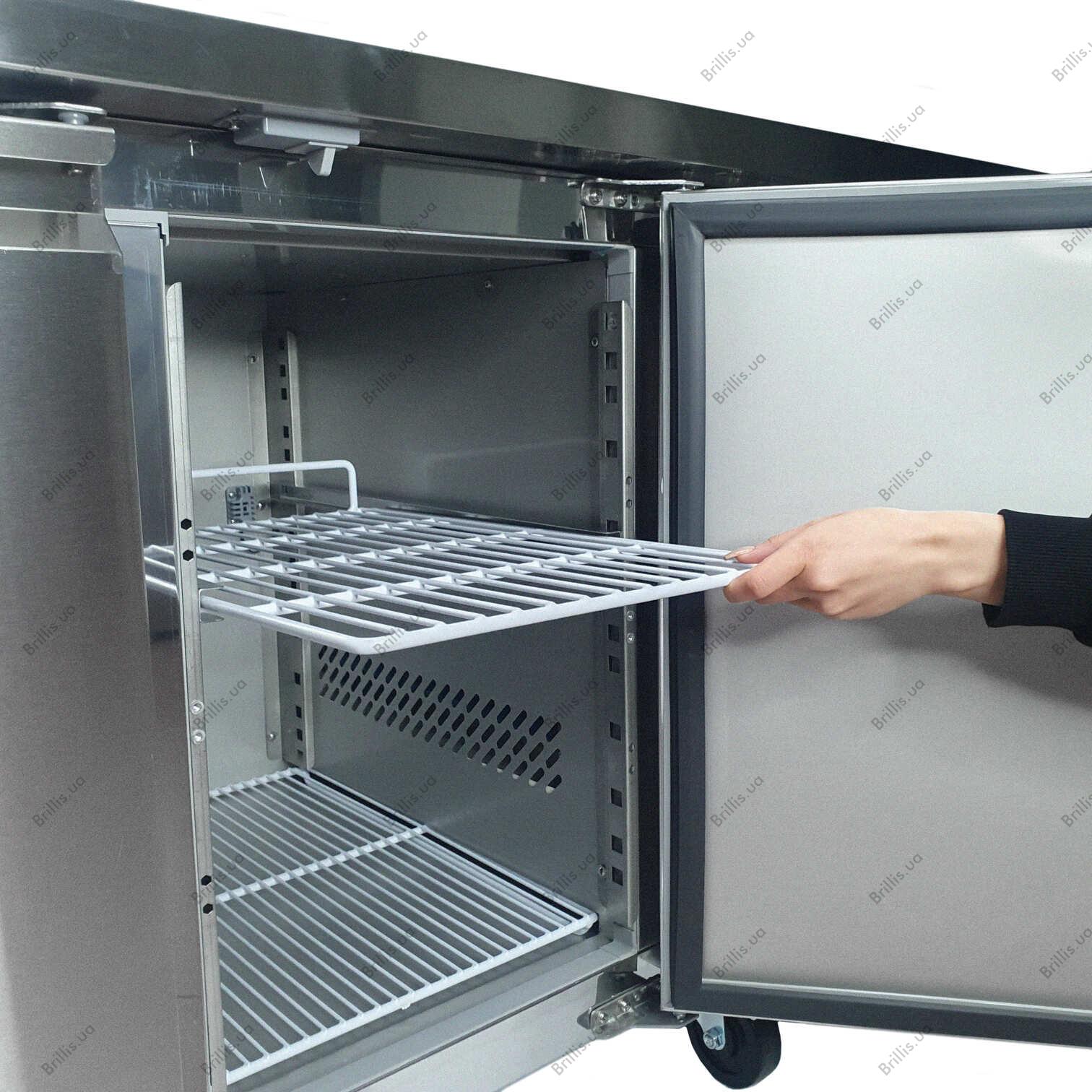 Стіл холодильний тридверний BRILLIS G-UGN3100TN - це професійне рішення для ресторанів, кафе та інших закладів громадського харчування. Він поєднує функції зберігання продуктів у холодильній камері та надійної робочої поверхні для приготування страв, що оптимізує простір кухні та підвищує ефективність роботи персоналу.