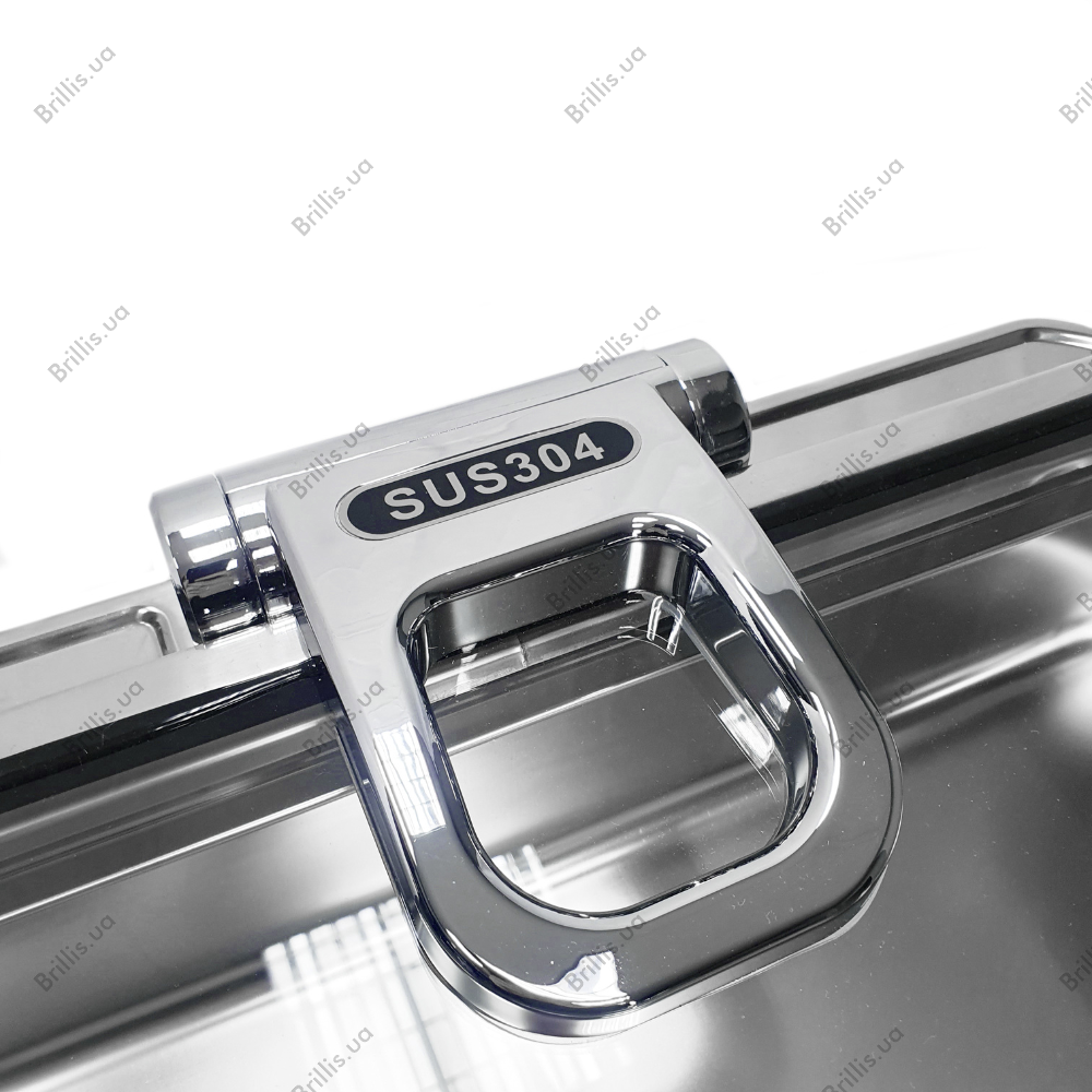 Крышка - гидравлическая с окном и силиконовым уплотнением открывается плавно, плотно прилегает к корпусу, сохраняя тепло и предотвращая пересушивание блюд. Прозрачное окно позволяет контролировать содержимое без открывания, что особенно удобно при подаче на открытых линиях.