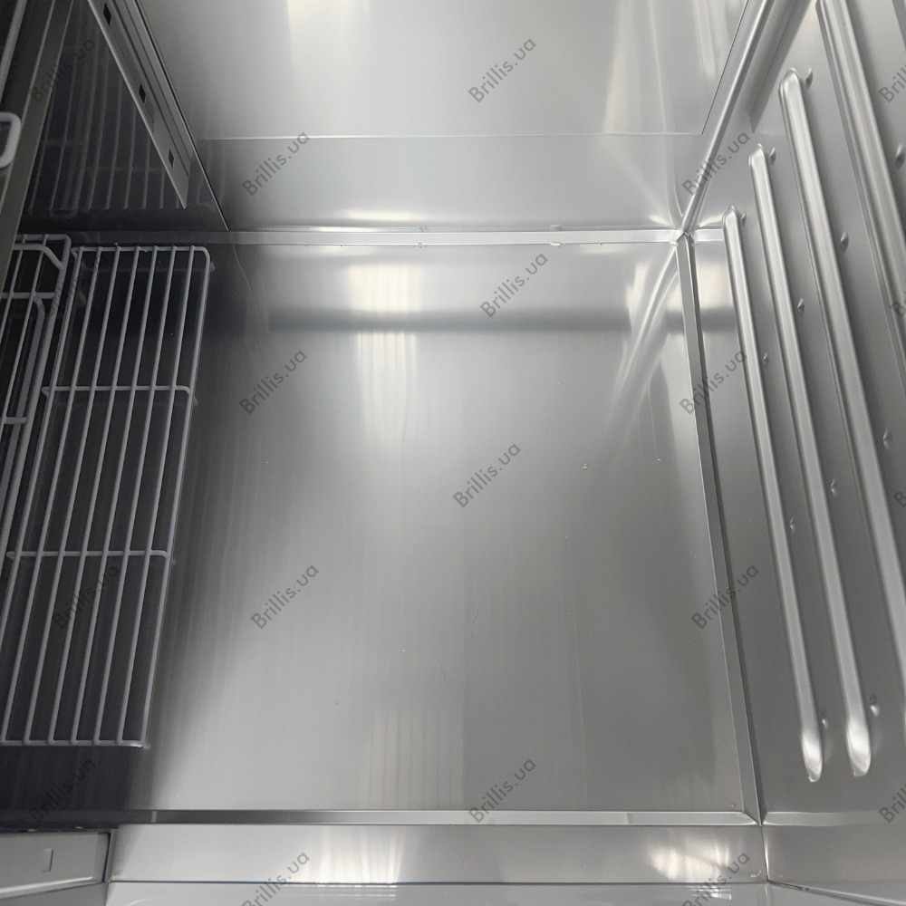 Имеет универсальные направляющие для полок, что делает ее еще более удобной и функциональной в использовании. Комплектуется 10 полками, из которых 8 имеют размер 530×650 мм и 2 - 510×605 мм, что позволяет эффективно организовать хранение продуктов на дне шкафа. Кроме того, направляющие совместимы с гастроемкостями формата GN 2/1 и GN 1/1.