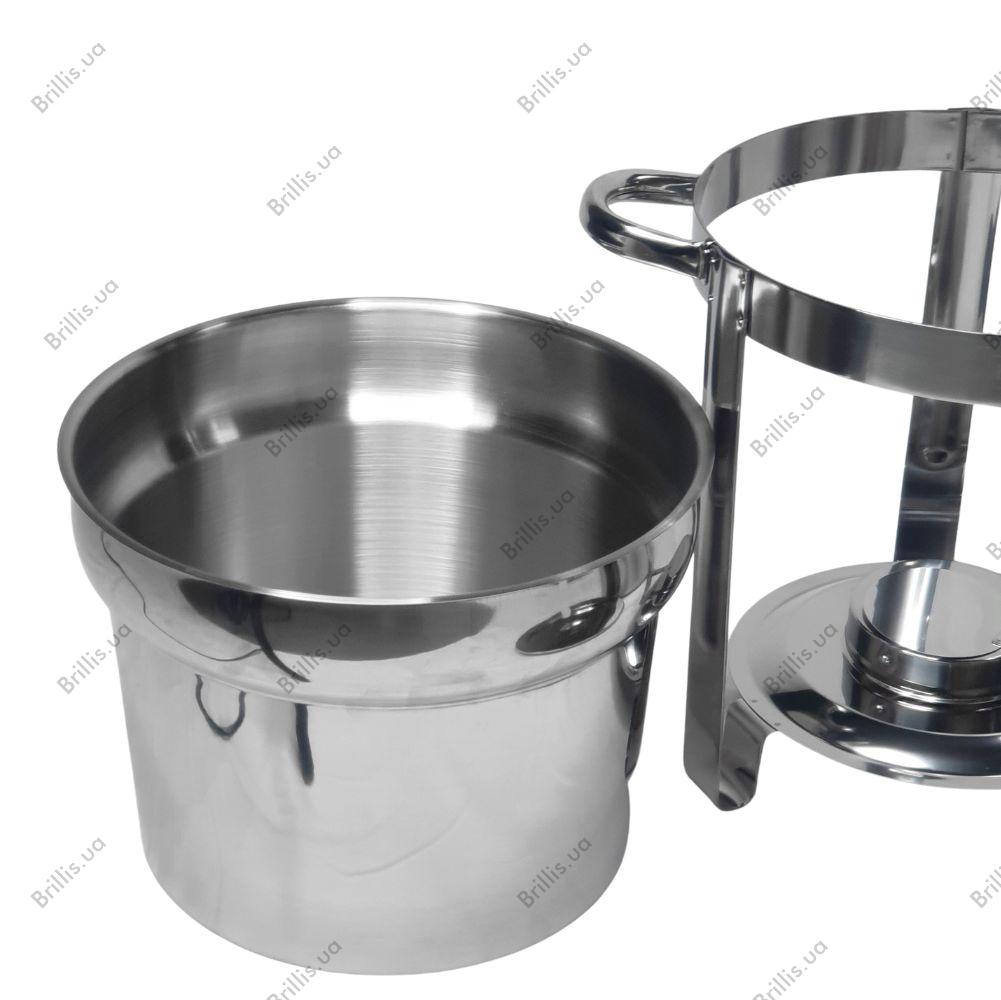 Емкость объемом 11 литров позволяет комфортно работать с большими объемами блюд, обеспечивая удобство обслуживания во время банкетов и фуршетов. Конструкция включает в себя отдельные емкости для воды и супа, а также прочную раму-каркас.